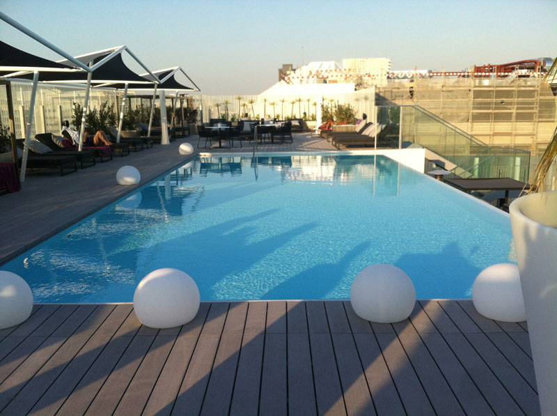 Hoy en día las piscinas se pueden decorar alrededor con mucho gusto. Desde una playa de madera sintética o con madera de IPE, distinto de las de piedra artificial o natural. Para gustos están los colores.